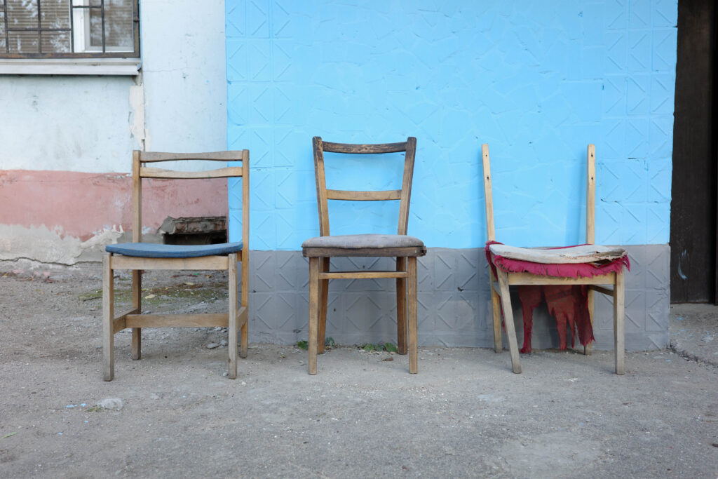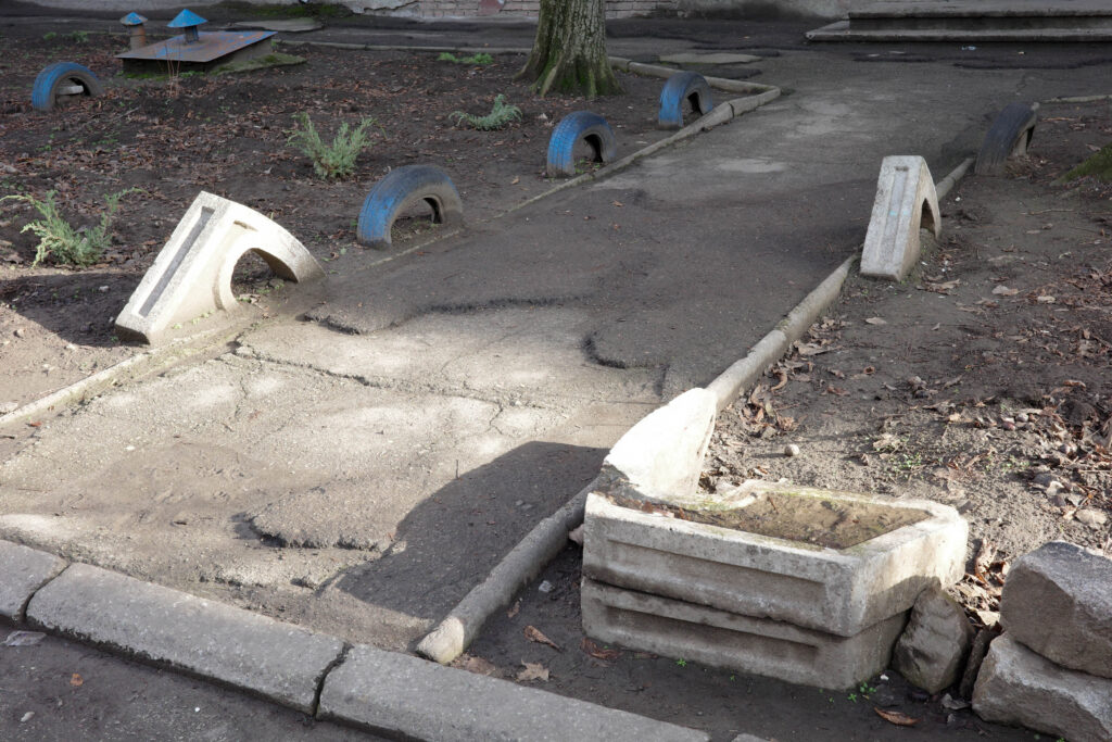“Like the 90s or Out of time” – is the ongoing project from 2024 year about places of my city that looks like nothing had been changed since it was in USSR as if the time had stopped. Alongside modern architecture and new stylish buildings (there are few of them, but even during the war, new houses continue to be built here), many courtyards retain signs of the old Soviet style: dovecotes, garages, benches, balconies, etc. All these architectural elements have neither stylization nor urban style and were built from whatever money was available. Yard decor is also a separate topic of taste for Soviet people. Due to the eternal shortage and the preservation of the extremely unnecessary, everything was kept and nothing could be thrown away. This is how works of art from rubber wheels and decorating entrances with parts of bench structures began to appear. (Zaporizhzhia, Ukraine)